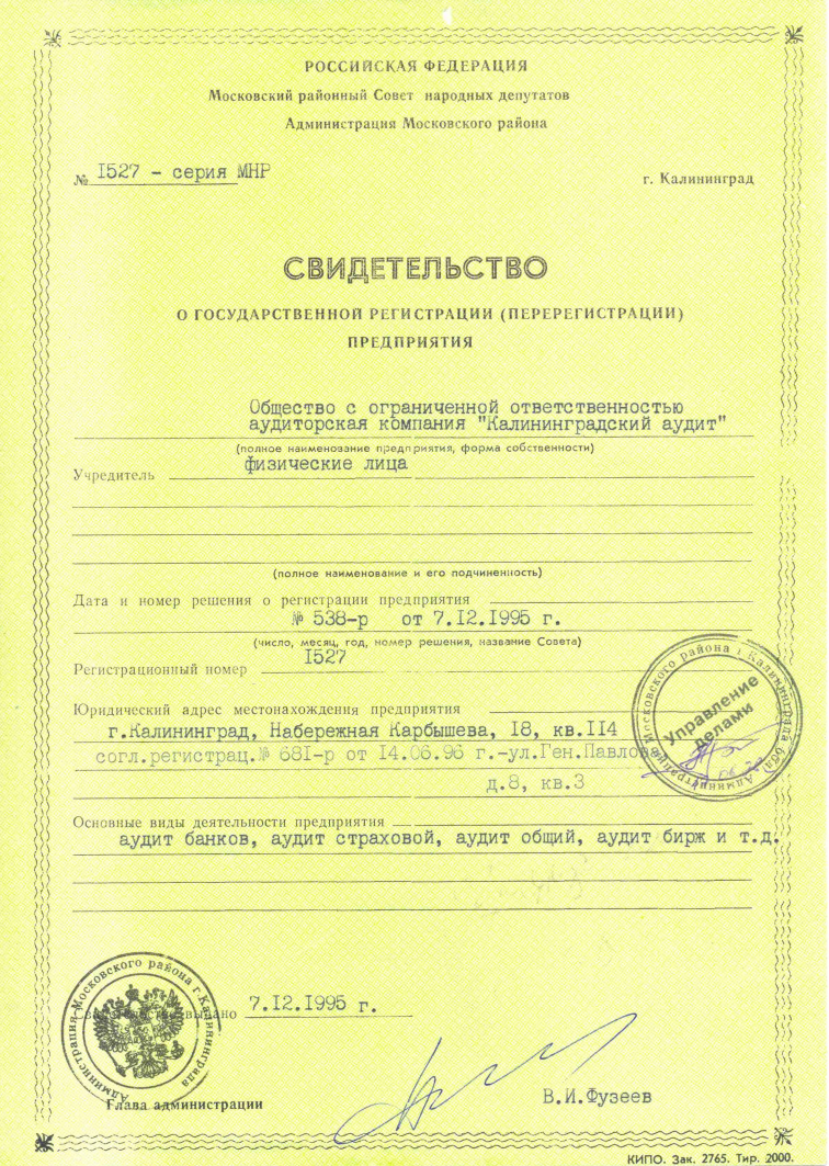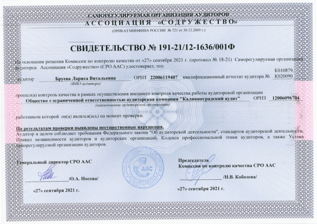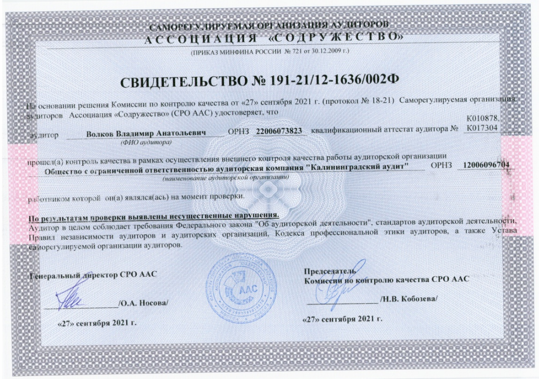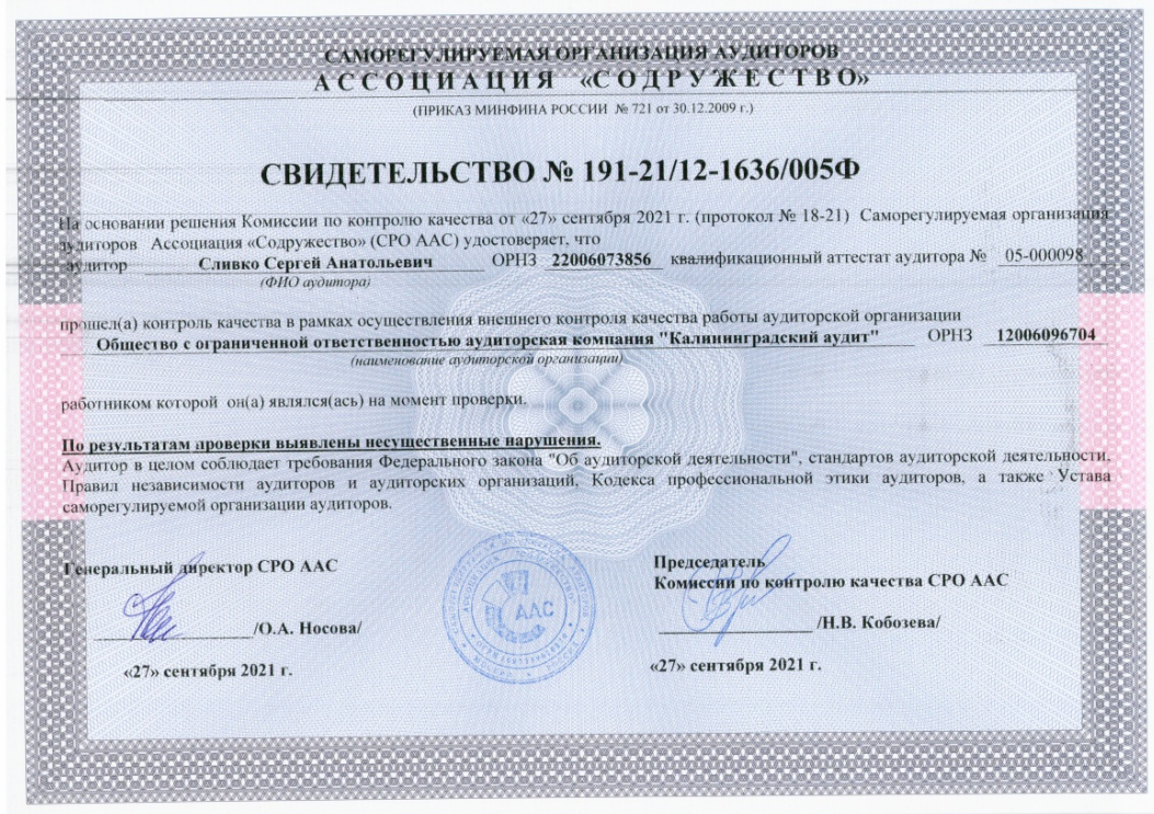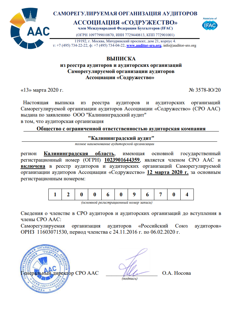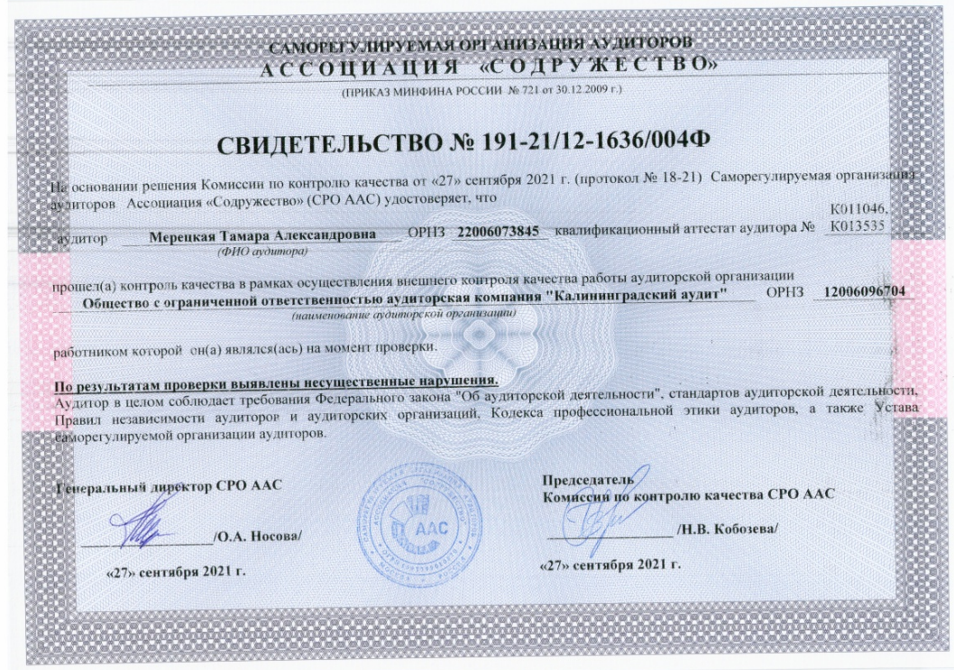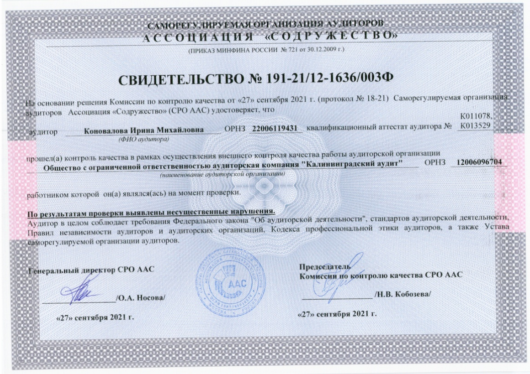ООО аудиторская компания "Калининградский Аудит" образована 7 декабря 1995 года. Мы предоставляем широкий спектр услуг в области аудита, бухгалтерского учета и налогообложения, правового, налогового, финансового и инвестиционного консультирования, стратегического планирования и маркетинговых исследований, применения МСФО. ООО "Калининградский аудит" является членом Саморегулируемой организации аудиторов Ассоциации «Содружество».