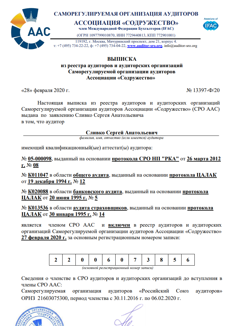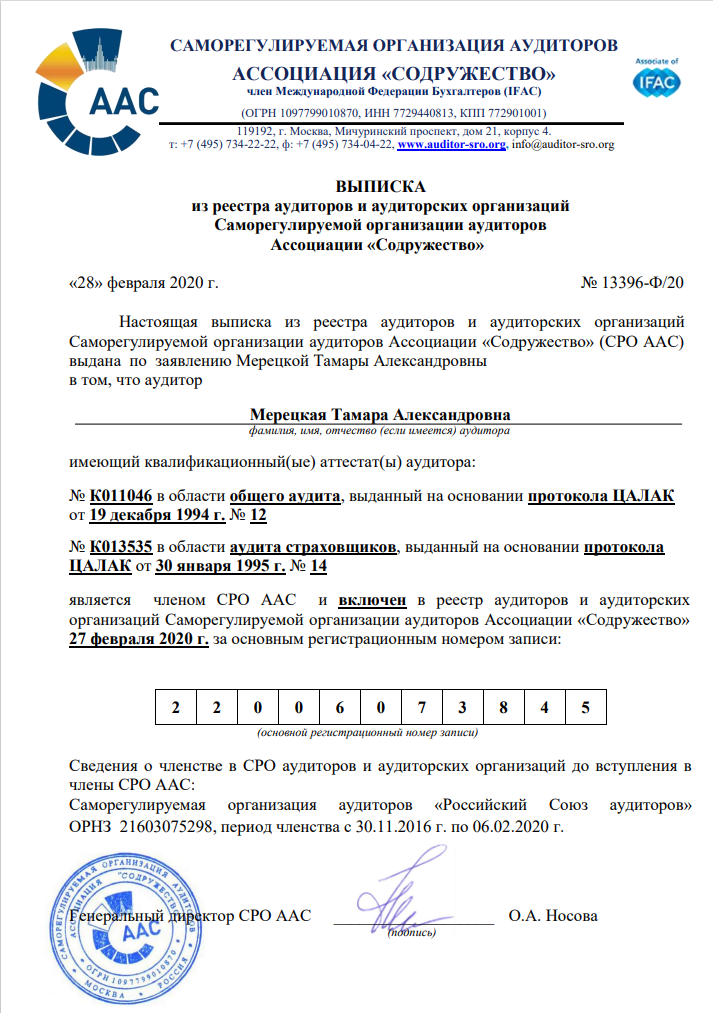 - Аудит отчетности, подготовленной по национальным стандартам, а также по Международным Стандартам Финансовой Отчетности (МСФО)